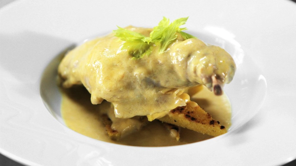 Povrch kuřete ještě potřeme ghí. První půlhodinu pečeme přikryté alobalem, potom kuře otočíme, lehce podlijeme vodou a pečeme další půlhodinu přikryté. Alobal odstraníme a dopečeme dozlatova. Kuře doporučujeme podávat se šťouchanými brambory.