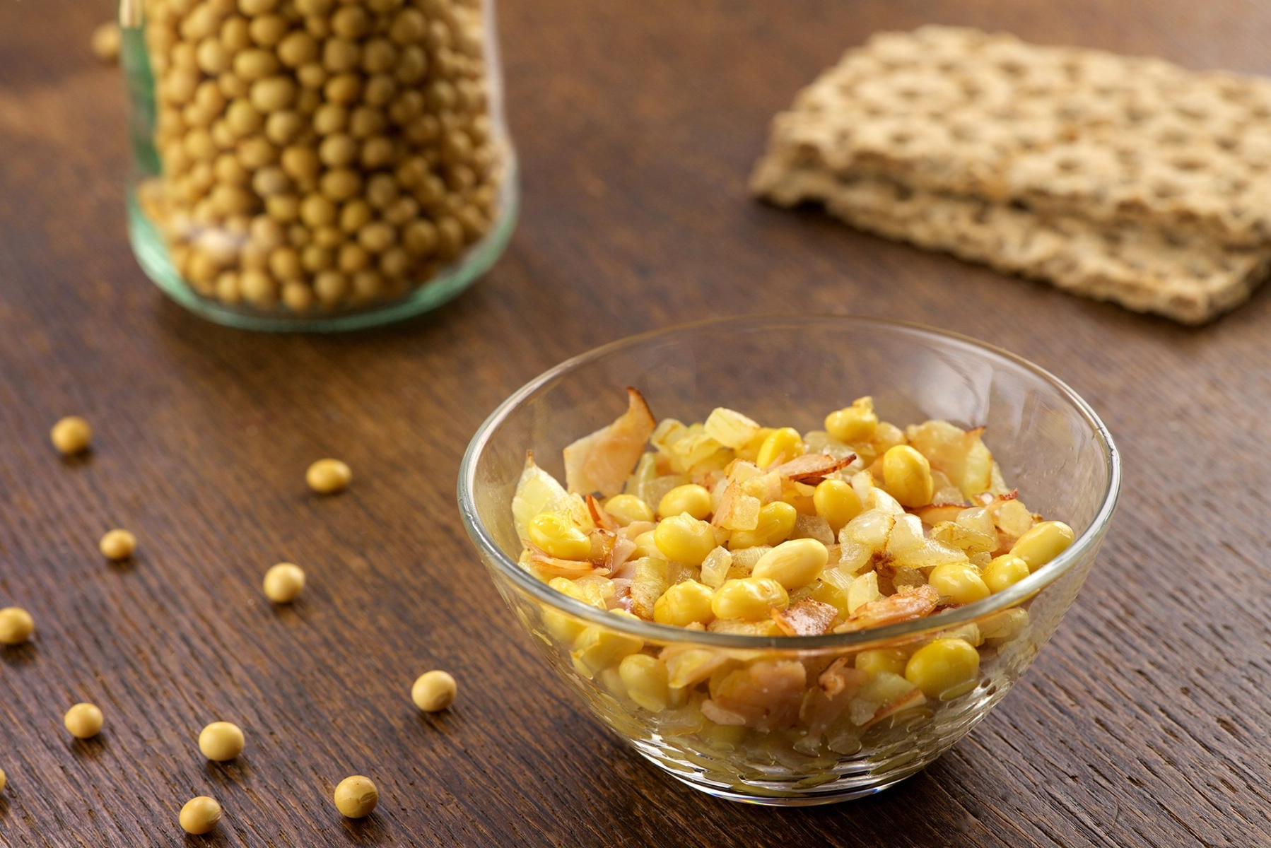 Lehký oběd nebo lehká odpolední svačina ze sójových bobů, která pomůže bez pocitu hladu přečkat období mezi obědem a večeří. Sójové boby jsou velice hodnotné pro svůj vysoký podíl bílkovin. Mají vhodné složení aminokyselin, obsahují lecitin, který je nutný pro přeměnu tuků a cukrů, a velké množství vlákniny. Jsou rovněž bohaté na minerální látky – vápník, draslík, hořčík, fosfor, železo a další. Z vitaminů je zde nejvíce zastoupen provitamin A a vitaminy skupiny B.